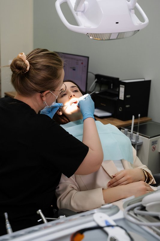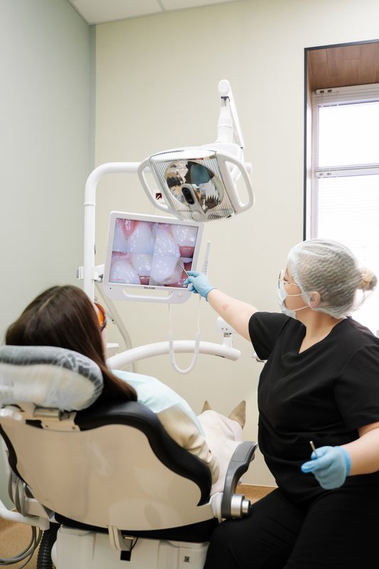шинирование подвижных зубов и восполнение зубного ряда с помощью стекловолоконных шин GLASS PAN, гигиеническая чистка зубов ультразвуковым скелером, AIRFLOW,